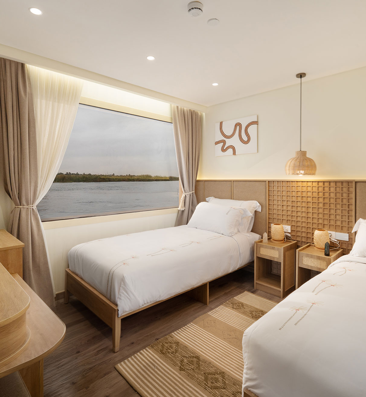 Fully sound-isolated, they allow rest to unfold in harmony with the Nile rather than the world beyond.