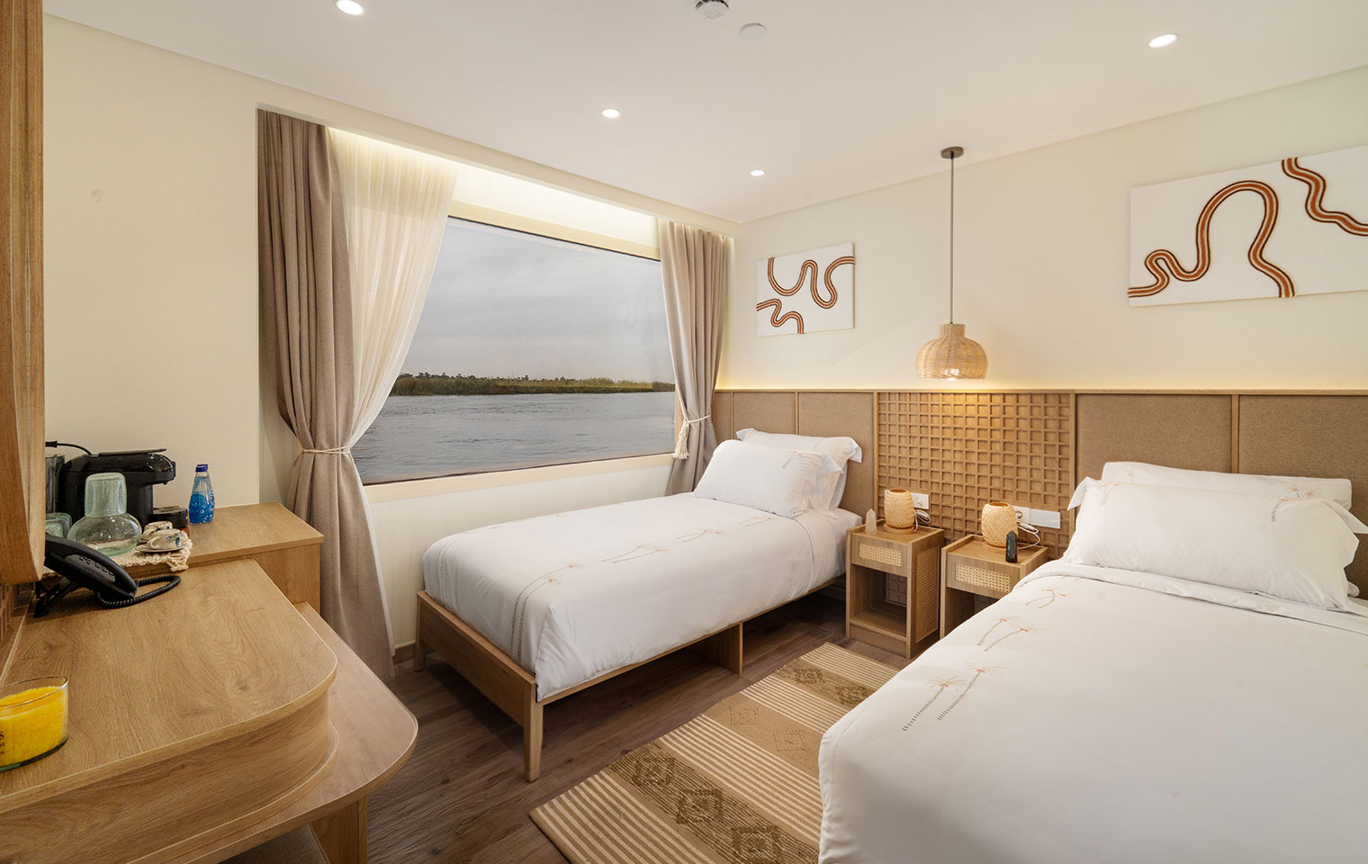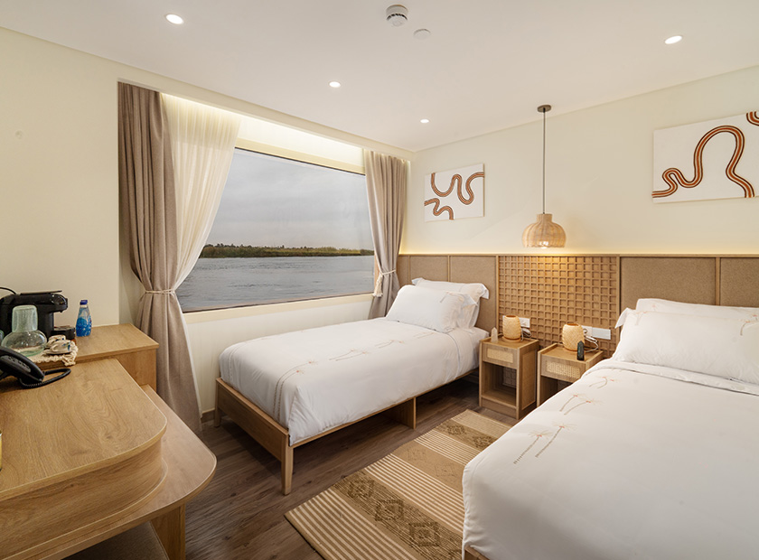 Each cabin is fully sound-isolated, allowing sleep to follow the rhythm of the Nile—not the world beyond.